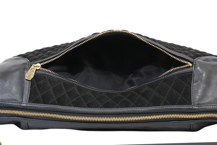 A defining detail is the custom-designed zipper pull, setting it apart from common designs. Combined with diamond quilting and bold gold zippers, this bag achieves a balance of rugged toughness and refined elegance.
