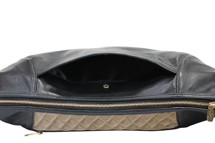 A defining detail is the custom-designed zipper pull, setting it apart from common designs. Combined with diamond quilting and bold gold zippers, this bag achieves a balance of rugged toughness and refined elegance.