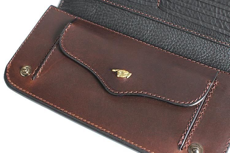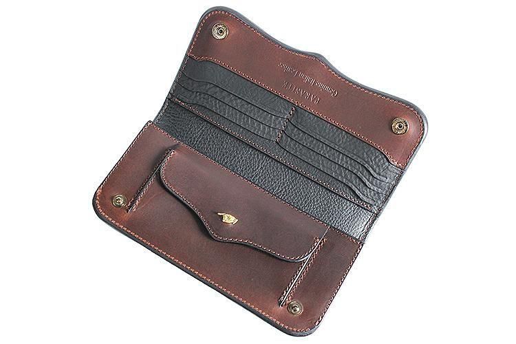 内側で使用している占領染めされたミネルバボックスはドライドラム加工で自然な折れ皺が生まれ、それぞれが違った表情を持つ柔らかく味わい深いイタリアンレザーです。